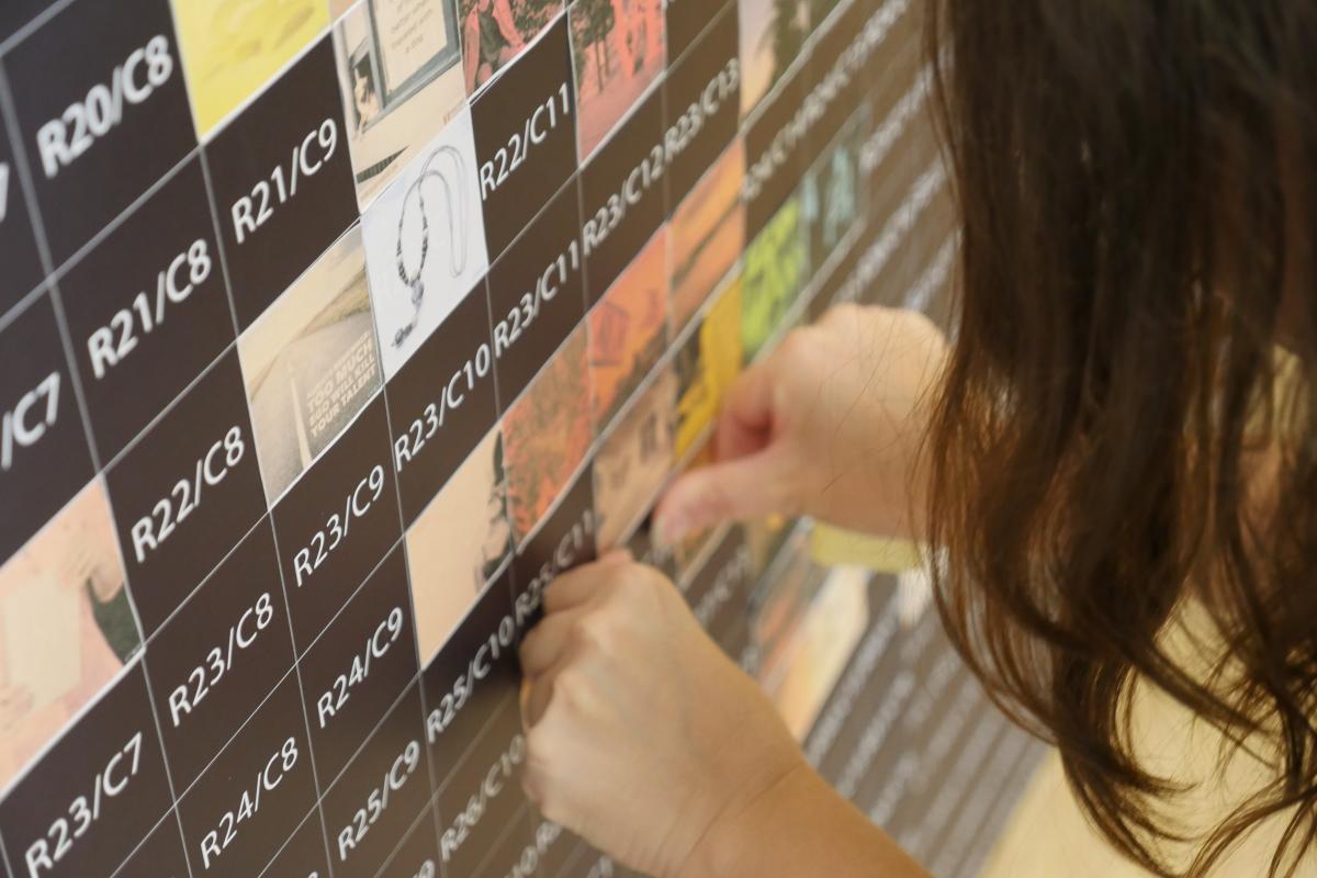 Je ontvangt een unieke fotosticker met een nummer. Dit nummer correspondeert met een vakje op de mozaïekwand.
